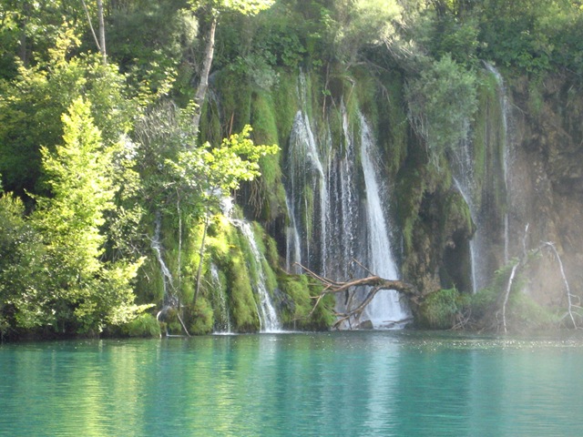 Diríamos –de hecho dijimos- que del bosque al lago y del lago a las cascadas de seda se tarda el mismo tiempo que el corazón se toma para agrandarse. Para enternecerse. El paseo no agota porque la vista está siempre ocupada en descifrar todos los matices de verde y azul, en deshilvanar cada hilo de agua e intentar enmarcarlo todo en una foto imposible que al final no puede sino fragmentarse en miles de fotos posibles.