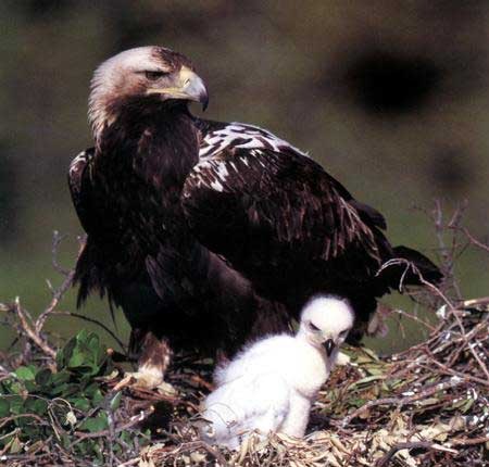 La reina de las aves en todo el mundo lo es también en España. El Águila Real –en efecto- es la más grande de su especie –no la más grande de las rapaces- y la gran cazadora por excelencia, se atreve con mamíferos de gran tamaño y hasta con zorros. Inconfundible su nuca dorada, habita preferentemente zonas montañosas adonde no llega la vegetación, aunque es muy adaptable a otros ecosistemas.