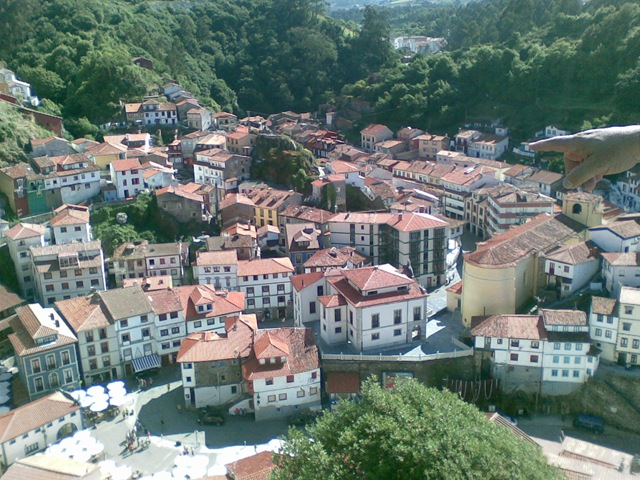Trepar hasta este mirador tiene su penitencia, como ya os figuraréis. Empieza con un tramo de escalones, se recomienda no subirlos de dos en dos, que luego se paga. Hacia la mitad ya se vuelve un mínimo sendero empinado no, escarpado. Pero se encuentra fácilmente, no hace falta violar patios de casas particulares. Arriba, esta vista, entre otras. No sé exactamente qué señala ese dedo revelador, esa mano insospechada. Podemos jugar a recrearlo. A lo mejor es una estatua que allí le habían hecho a un héroe local, pero entonces reconozco que sólo he reparado en ella cuando he visto esta foto, luego no debía ser tan héroe. A lo mejor se trataba del primo de una señora que en ese momento cruzaba la plaza. O alguien que tuvo que subirse hasta allí para encontrar su coche aparcado, que no sería de extrañar tampoco. O más trascendente ¿es el dedo visionario que nos invita a guiar la vista hacia el destino severo? En fin, quien allí estuvo deberá guardar el secreto, yo la verdad debí llegar tan exhausto que quizás ya no recordaba ni dónde estaba. Ahora trato de hacer memoria, con vuestra ayuda.