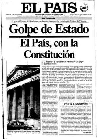 ¿Qué hiciste, dónde estabas aquel día? Es la pregunta que todos los que tenemos más de 30 años nos hacemos estos días. En la mayoría de los casos no es relevante, como la mía: recuerdo que ese lunes estaba por la tarde estudiando para un examen, entonces me quedé frito, y medio en sueños escuché conversaciones en casa, me levanté y ya empecé a tener idea de lo que estaba ocurriendo. Cuando de verdad me sobresalté y pude calibrar el alcance de aquello fue cuando escuché en Hora 25 que le habían puesto una pistola en la sien a Landelino Lavilla, presidente del Congreso. Al día siguiente fui a clase, mi colegio estaba en Atocha y sólo hasta allí llegaba el autobús. Claro, no hubo examen ni prácticamente ninguna actividad, el profesor de Historia se encaró con dos “fachorros” de mi curso que ponían carita de “yo no he sido”, a esas horas ya se sabía que el golpe estaba cayendo maduro. El único que se empeñó en dar clase normal fue don Anselmo, el profesor de Literatura, que los martes nos llevaba a una sala de proyección y nos ponía alguna obra clásica, principalmente de Estudio 1. Al término de ésta, serían las 14.00h del 24 de febrero, nos puso las ya legendarias imágenes, ahí las vi por primera vez. Al día siguiente hubo examen, y claro, suspendí.