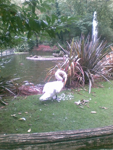 Cisnes los debe haber muchos y en cualquier parte del mundo. Así que poca pista estamos dando, lo reconozco. Secoyas no tantas ni en cualquier sitio, pero de esa no tengo foto. Así que conformémonos con el cisne. Esto no son los Alpes, que a alguno le podría traicionar la tentación, claro que de éstas tampoco faltarán, en muchas y variadas formas de presentación. La escena es cotidiana, poco cisnematográfica diría yo, si acaso Woody Allen podría sacarle alguna punta si se pasara por aquí. Tampoco estamos en Cisneylandia, que este que vemos aseándose con esmero tiene mucho porte, mucho señorío y mucho saber estar, como la mayoría de los ciudadanos de este lugar. Y sin noticia del Cardenal Cisneros ni del cisne de Occidente. Parecerá complicado, pero yo os digo que el cuello de un cisne es largo, y todo lo largo tiene un final.