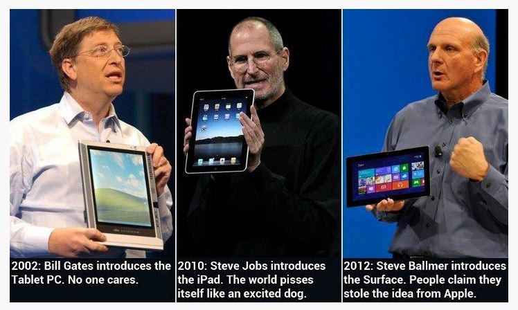 Sí, Microsoft tiene todo el derecho a decir son suyas. Ellos pusieron la primera en el mercado en 2002, aunque no dejaba de ser un prototipo sobre el que mostrar ciertas virtudes e innovaciones de su sistema operativo titular de entonces, Windows XP, que no lucían tan evidentes en el clásico PC. No sería tan bonita, tan sexy, tan funcional. Pero era, existía, y se llamó Tablet PC.