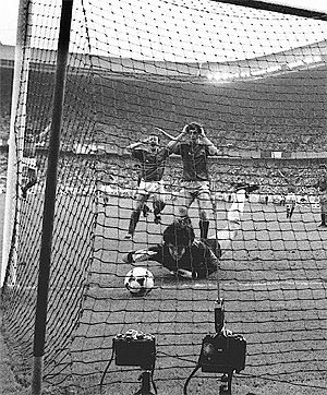 El cancerbero donostiarra ha explicado la jugada mil veces. Estábamos en ese partido fundamentalmente gracias a él, y aún así no faltó –ni falta- quien afirma que se lo metió adrede –De no ser vasco el portero, a nadie se le hubiera ocurrido decir algo así. Explica que después de pararla se vio encima del balón y éste, al recibir la presión del cuerpo hacia abajo, hizo efecto flotador y salió despedido… hacia dentro. Nos quedó para siempre la imagen de ese gol. Un error que cualquier portero puede tener, verdadera mala suerte. Pero que por más que lo ves queda tan horriblemente feo… y da tanta rabia..