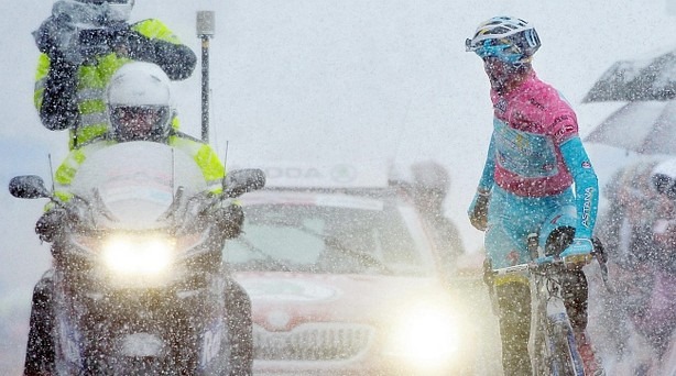 No tiene ninguna culpa Vicenzo Nibali de que este Giro de Italia haya resultado insulso e insignificante, aparte de casi invisible. Ha sido el mejor de muy largo y lo hubiese sido también aunque se hubiera corrido entero y aunque durase dos semanas más. Lo que pasa es que prácticamente no se ha enterado ni él. Por un lado por la restringida cobertura televisiva, que pareciera que estamos en los setenta, cuando a Fuente, Merckx y Gimondi era más difícil de verlos que las películas en Perpignan, y sus batallas teníamos que imaginárnoslas a partir de los exiguos resúmenes de tres minutos que nos echaban. Y la climatología ha hecho el resto. Hombre, siempre que en el mes de mayo incluyas en el recorrido puertacos de 2.000 metros para arriba, pues te la juegas, y no es la primera vez. La nieve le ha jugado estas malas pasadas al mismísimo Tour en julio, y no digamos a la Vuelta cuando se corría en primavera. Si además coincide que este año el tiempo anda especialmente tocapelotas, pues resulta que no se ha podido disputar ni la mitad de la montaña, aparte de que casi todas las etapas han transcurrido en días de perros. Así, se podría hablar de un Giro perfectamente olvidable, excepto porque, al menos, ha sido capaz de dejarnos una impronta, una imagen para el recuerdo. La de un imponente Nibali –bueno y los demás detrás, que también lo padecieron- escalando majestuoso las Tres Cimas de Lavaredo en medio de una descomunal nevada. Ese rosa en medio de la blanca tempestad ha dejado al menos un poco de poesía de este deporte, que últimamente produce demasiada literatura zafia.