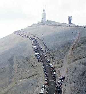 El Mont Ventoux, en español Monte Ventoso, no pasa inadvertido nunca. Dicen que se divisa desde 100 km a la redonda, tan separada que vive esta montaña de los Alpes, que parece que la hubieran repudiado por maldita. Mucho se ha hablado de su clima extraño, de que alguna conspiración magnética se fragua en sus entrañas, aunque lo cierto es que su aspecto lunar se debe a que en el siglo XII lo talaron por completo. Y quedó a la intemperie de ese viento que fustiga los ánimos, a expensas de ese sol que en verano derrite las ideas. Escenario propicio para las águilas culebreras, que por algo será. Asfixia es el término que más se utiliza para describir su ascensión. Hasta cuando lo ves por televisión parece que te cuesta respirar. Y algo de culpa, claro, tienen sus 16 km rampas a una pendiente media del 10%, su estrechez, sus cunetas apretadas de gente y que su sentencia haya sido decisiva, alguna vez para la vida y las más para el Tour.