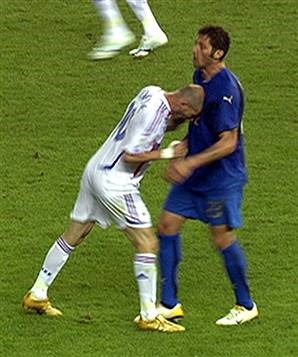 Del Mundial 2010, la imagen que más nos quedó sin duda, o al menos para nosotros, fue la del gol de Iniesta. Ignoro si, más allá de nuestra perspectiva subjetiva, hubiera sido también esa la elegida, pero es muy posible que sí; del de Corea y Japón, posiblemente la de Ronaldo en la final, con sus dos goles y su “innovador” corte de pelo; Recuérdese la de México 86, el portentoso gol de Maradona a Inglaterra –precedido por el de la “mano de Dios”. Y podemos decir que cada mundial ha tenido su icono, que ha podido ser una jugada –las de Pelé en México 70-, un jugador –como los citados en “sus” mundiales”-, un equipo –Holanda en el 74, aunque no lo ganara- o incluso el presidente de un país, como sucedió con Sandro Pertini en nuestro Mundial 82. Sin embargo, aquella tarde de julio en Berlín marcó un hito. Acciones violentas se han visto y se recuerdan muchas en los mundiales, pero que una de ellas llegara a erigirse en la gran noticia del evento, era la primera vez. A ello contribuyó, lógicamente, la identidad y el carisma del protagonista.