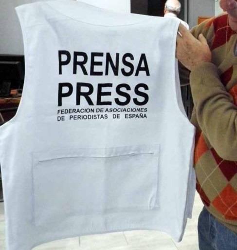 No tendremos honra pero tenemos chaleco. Si eres periodista y quieres tomar fotos o vídeos de una manifestación sin que te aporreen, o simplemente estar ahí para enterarte de lo que va pasando y que no te carguen, ponte el chaleco blanco. Para tenerlo deberás ser socio de a alguna de las asociaciones que pertenecen a la Federación de Asociaciones de Periodistas de España (FAPE), como la Asociación de la Prensa de Madrid (APM), cuya presidenta, Carmen del Riego, es quien ha anunciado las negociaciones que mantienen con el Ministerio del Interior para que la nueva Ley de Seguridad Ciudadana contemple este distintivo profesional que permita ejercer la profesión sin limitaciones. Al parecer, España es el único país de la UE que no tiene regulado este aspecto de la cobertura informativa de acontecimientos que tengan incidencia en el orden público. Aquí, información sucinta sobre el tema. La APM negocia con el Ministerio del Interior… Eleconomista.es.