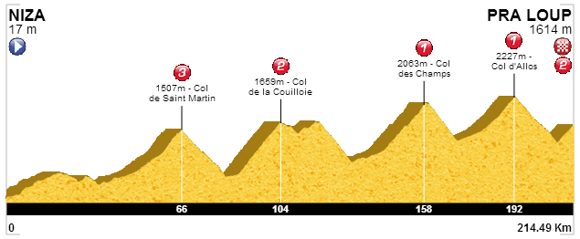 Perfil de la etapa Niza-Pra Loup del Tour 75