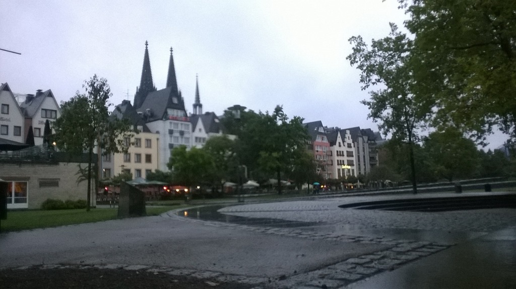Como el panorama siga así –y va a seguir-, la tarde se presume va a ser de manta y fútbol. Y si no hay manta, ya nos apañaremos otras coberturas, por ejemplo el techo de algún bar. Ahora me acuerdo que hace unos días –y parece que hace ya tanto- pasé por al lado del club de playa –que lo hay sí, a la vera del Rin– y no descarté el plan de acercarme el domingo, echarme en una de esas tumbonas y hasta quién sabe si darme un chapuzón en el río –para lo cual, en todo caso, no hace falta pagar los seis euros que cuesta el beach club de marras. Pero eran otras circunstancias, otra meteorología, otros deportes para la ocasión. Así que, lo dicho: al F.C. Köln lo ven cuatro mataos con bufandas rojas. El pub donde echan la Premier –el de Woodcock, naturalmente- está abarrotado. Así que lo vamos a sentir por la Bundesliga.