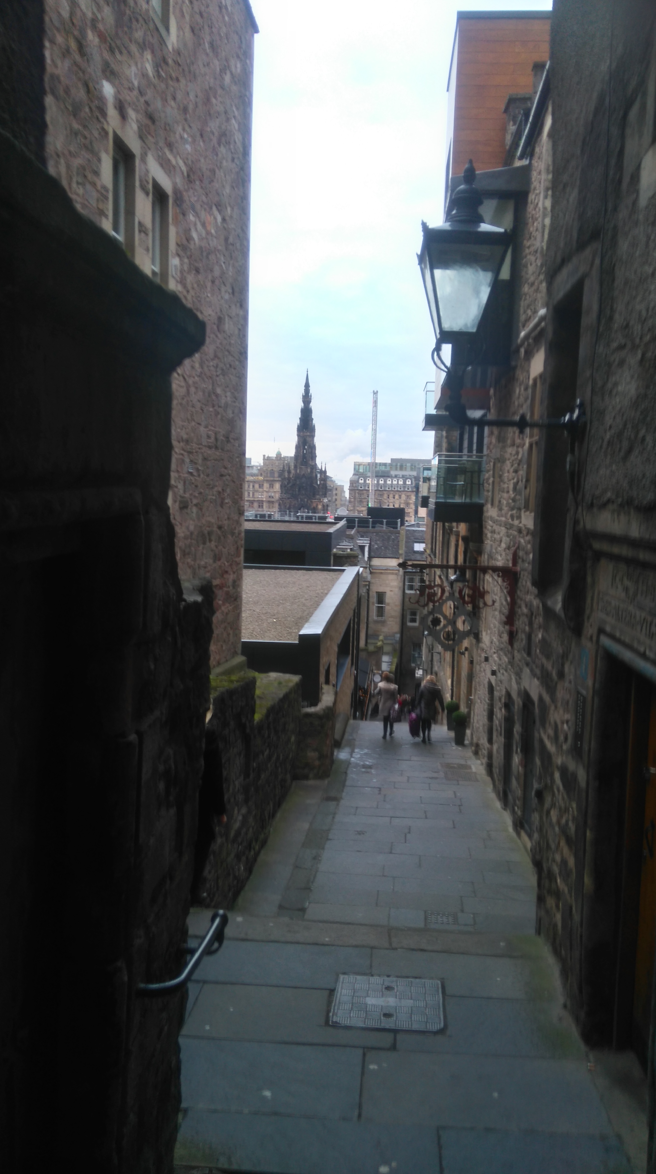 Es que Edimburgo son dos ciudades, y no nos referimos a la vieja y a la nueva, las que se comunican por puentes como si las separase un río, tampoco a los diferentes barrios que se extienden más allá. Se trata de una ciudad a la vista y otra oculta. Están las calles pavimentadas de historia, las avenidas inyectadas de energía, la Royal Mile o Princes Sreet, los tugurios y efluvios de Rose Street… Pero luego los innúmeros pasajes, pasadizos y recovecos “intrainmuebles”, que parecen comunicar con otro mundo, sí, con otra vida. Puede alguien venir caminando por Lawnmarket y de súbito desaparecer, creíste verle entrar en una tienda de tartanes y ya no volviste a saber de él. Si os volvierais a cruzar, horas después, posiblemente no le reconocerías porque ya sería otra persona.