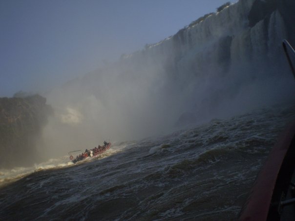 Euforia, liberación y al mismo tiempo risa nerviosa e impotencia de no poder mover ni un músculo. Será la sensación cuando la lancha nos ponga justo debajo. Eso sí, de uno de los saltos más amables, porque la citada garganta de 80 metros de altura o el rotundo Salto Bosetti no se prestan a estos juegos. Mucho menos a las hazañas de Vázquez Figueroa, que suponemos lo hizo en un paraje mucho menos violento, si no, a ver cómo… Gastón Arizmendi tuvo que irse allá por necesidad y sin ganas, a trabajar de guía en la agencia local Aguas Grandes, ahora lleva nueve años y dice que ya no se mueve de allí. Cayendo la noche el Parque Nacional cierra en teoría, pero en la práctica queda reservado a excursiones muy exclusivas y bien remuneradas, son los que tienen derecho a disfrutar del arco iris de luna. O los clientes del Hotel Hilton, enclavado en pleno corazón del parque, con vistas a toda la herradura salvaje, sólo a ellos, y en otros tiempos, se les permitió edificarlo allí.