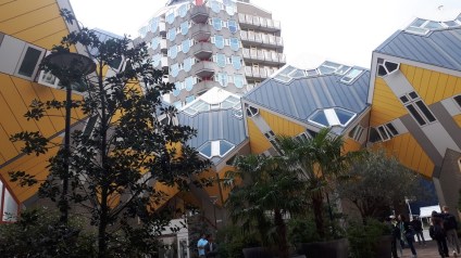 Reconocemos Holanda en el ingenio innato, desde las soluciones prácticas aplicadas a asuntos cotidianos a las grandes obras civiles. El cepillo con mango acoplable para llegar a la espalda y De Hef, el primer puente ferroviario elevable de Europa, hoy sustituido por un túnel, pero conservado como monumento a la capacidad industrial de esta ciudad y, por extensión, de la provincia y del país. O la ingeniería creativa que te hace plantearte cómo sería la vida en un cubo inclinado 45°, estas casas las diseñó el arquitecto Piet Blom no ya para impactar -que también- sino, según decía, para aprovechar mejor el espacio. Siempre dije que en este país sí hay montañas, pero están dentro de las casas, en esas escaleras imposibles que se empinan insoportablemente por la estrechez. Pues he aquí una posible solución. Entonces le das vueltas a cómo organizarías tu vida dentro de estos cubículos, yo ya he pensado mi propia solución, que seguramente no será la más original. Pero qué grandes son las cosas que, además del disfrute de verlas, te regalan el placer de hacerte pensar.