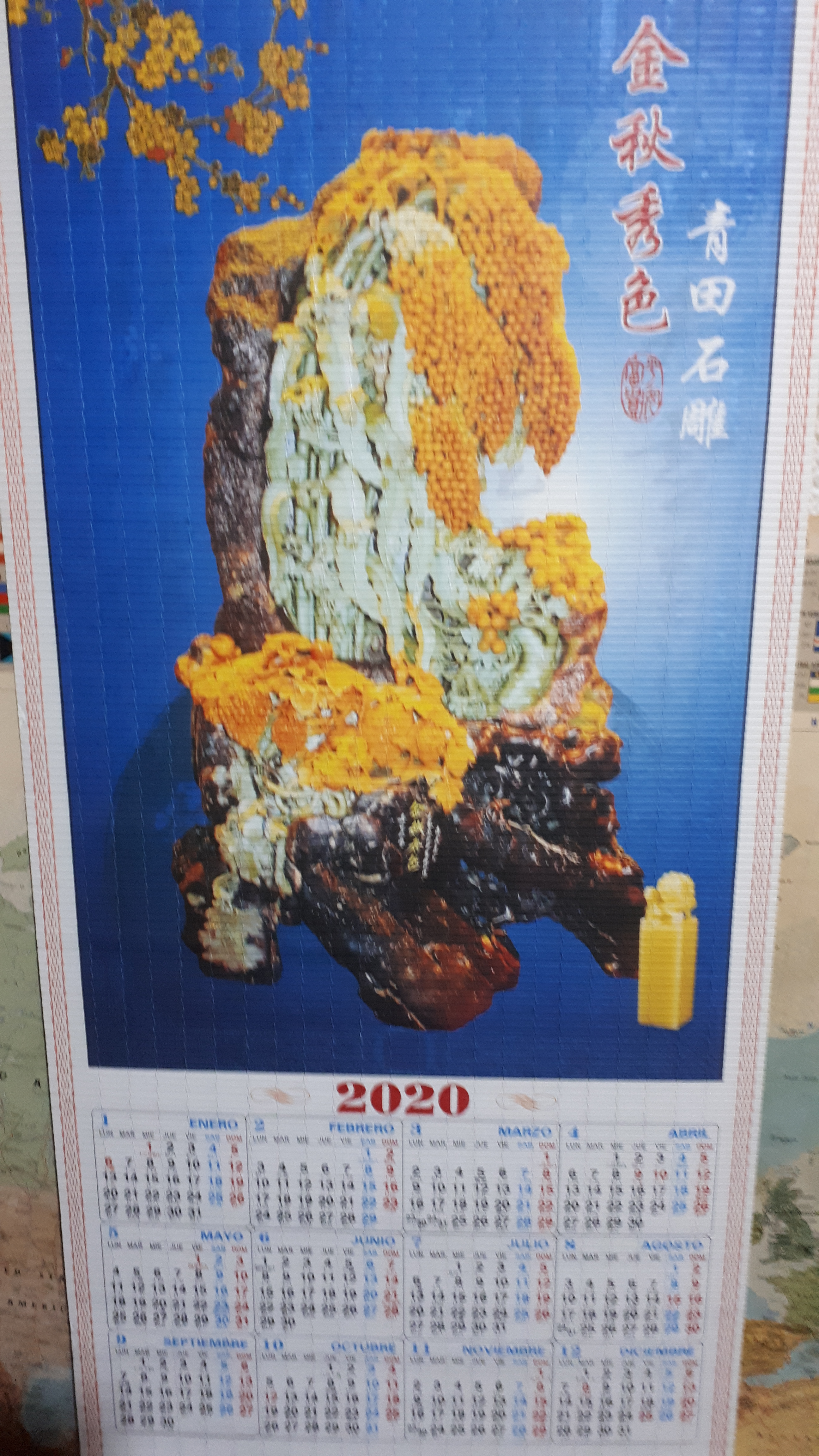 Y quedaba el último enigma. Ingenuos somos, eso digámoslo de entrada. Para nada conspiradores. Todo lo más, un poco paranoicos, pero sólo a ratos, cuando nos la ponen botando. El caso es que esta historia nos tiene intrigados. Por navidades llega a casa todos los años un calendario. A ver, llegan varios, como supongo en todas las casas. Pero al que voy, este es de un restaurante chino que frecuenta mi familia. De tela, muy cuco y bien acabado, siempre con una colorida ilustración. Muy práctico porque es como una esterilla que se despliega y encaja en cualquier estrecha parcela de la ocupada pared de mi habitación. Cuando llegó puntual este año, me lo quedé mirando. Qué raro, pensé. Era Navidad, ya digo, finales de diciembre.